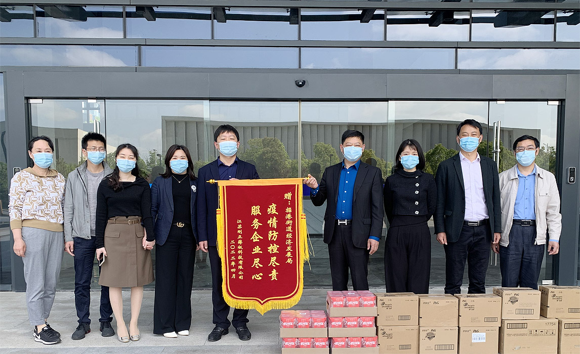 ? ? ? ?4月24日上午,江蘇剛正薄板科技有限公司董事長劉允華一行,帶著慰問物資來到掘港街道辦事處,親手將錦旗交到朱益峰主任手上。? ?