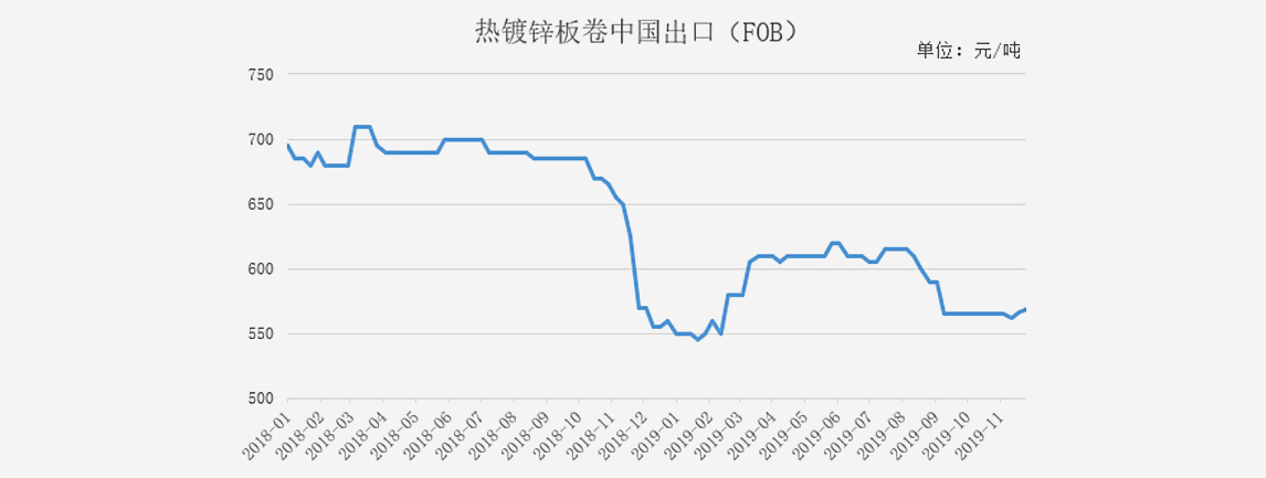 受國內(nèi)涂鍍板卷價格相對回暖影響,出口FOB價格也呈現(xiàn)上漲的趨勢,截至11月29日,鍍鋅板卷月整體漲幅為4美元/噸,至569美元/噸,相對而言,近期走勢一掃四季度以來相對低迷態(tài)勢。